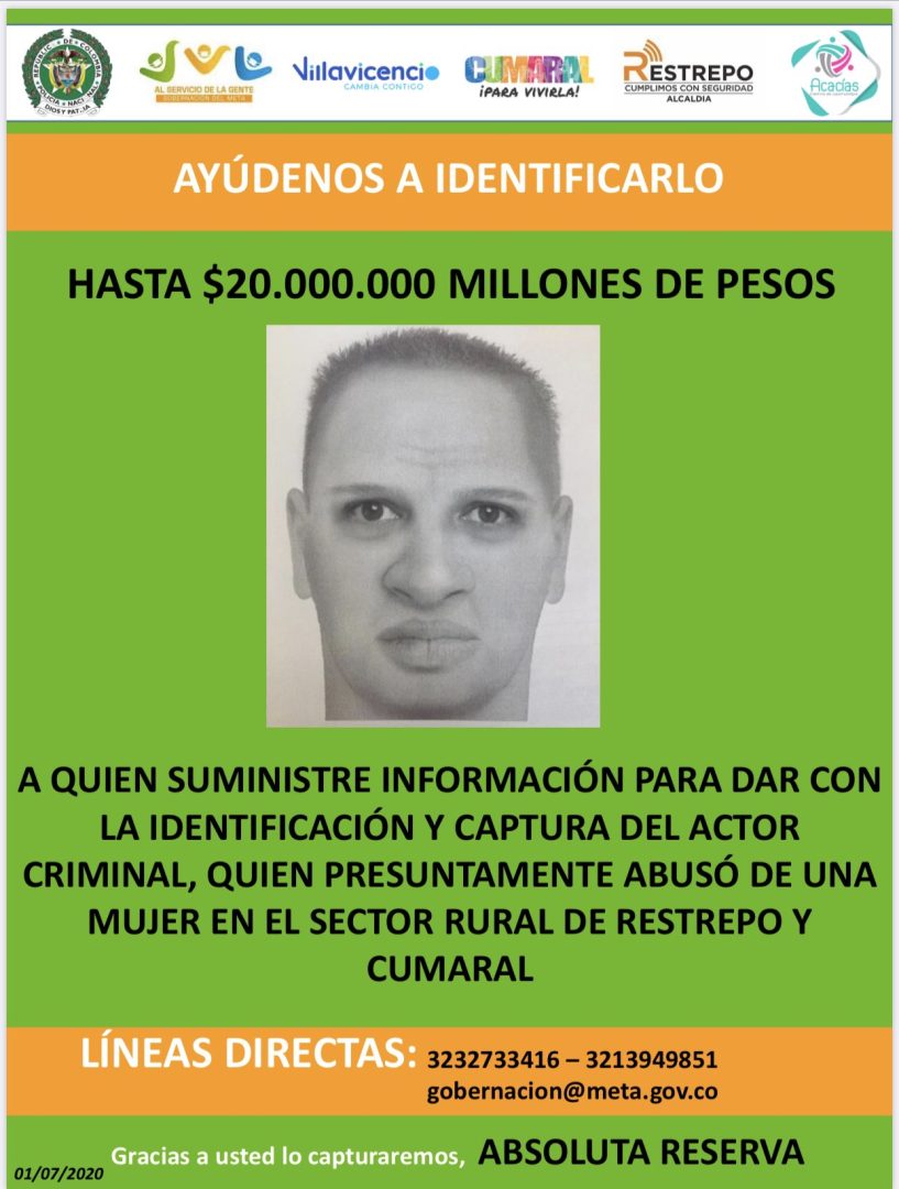 Capturar este sujeto, este ‘animal’, significa justicia para la víctima y confianza y tranquilidad para las mujeres. $ 20 millones de pesos de recompensa, por información que permita captura de este presunto abusador que violentó a una mujer en zona rural de Restrepo y Cumaral
